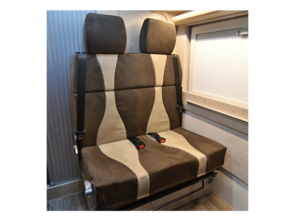 Dvousedadlo FASP 506 je komfortní a praktické řešení pro obytné vozy, umožňující bezpečné a pohodlné sezení ve druhé řadě. Tento model se vyznačuje robustním provedením a univerzální kompatibilitou, což jej činí vhodným pro instalaci v karavanech značek Fiat Ducato, Peugeot Boxer nebo Citroën Jumper.