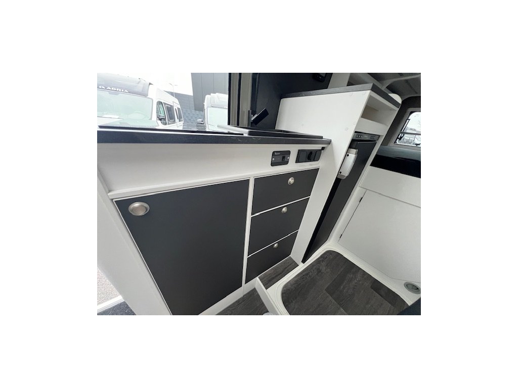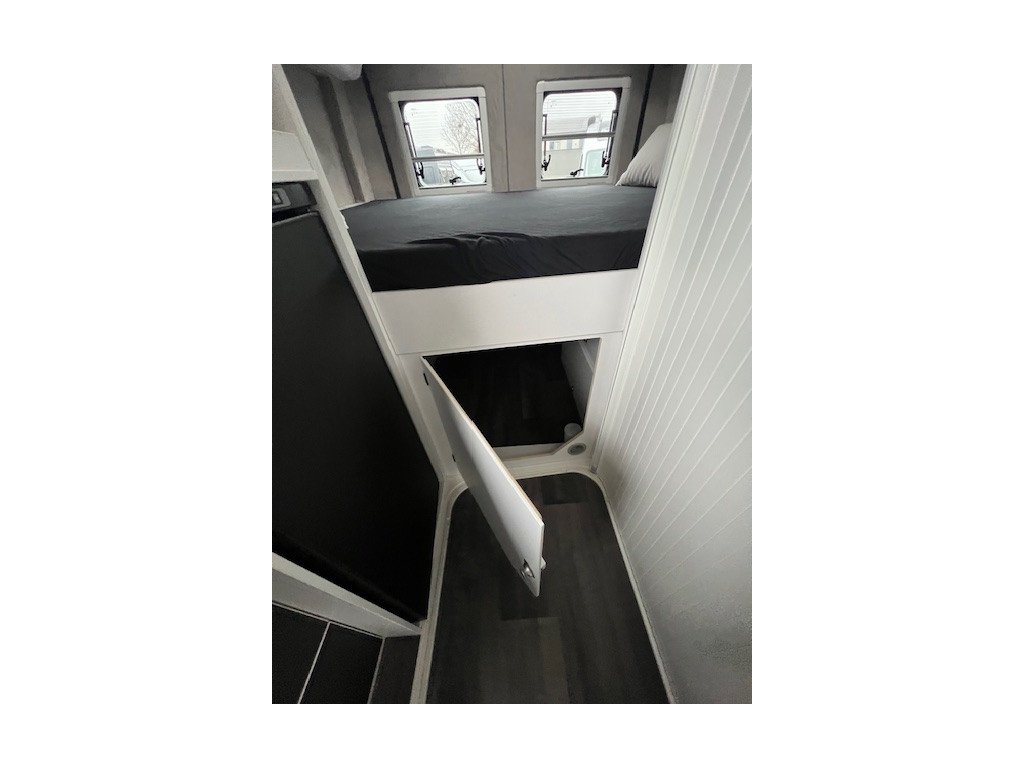 • Instalační box pod postelí pro Truma topení, integrovaná baterie, prostor pro další zařízení (střídač, MPPT regulátor, atd.)