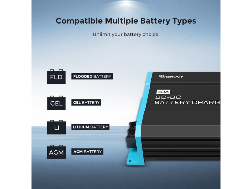 Nabíječky baterií DC-DC jsou nejúčinnějším způsobem, jak nabíjet nástavbové baterie za chodu motoru. Nabíječka baterií DC-DC je kompatibilní s mnoha typy alternátorů a nabízí správné nabíjení baterií AGM, trakčních, gelových a dokonce lithiových baterií s hlubokým cyklem! Díky 3stupňové nabíječce baterií a vícenásobným elektronickým ochranám mohou mít uživatelé jistotu, že se jejich baterie nabíjejí optimálně a automaticky. Pro dodatečnou bezpečnost izoluje vstup od výstupu a zabraňuje tak nesprávnému přenosu napětí.