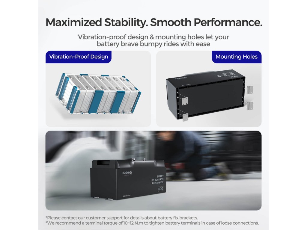 S pokročilými bezpečnostními funkcemi posouvá Renogy 12V 200Ah PRO výkon dále než kdy dříve, zatímco zajišťuje delší životnost baterie.