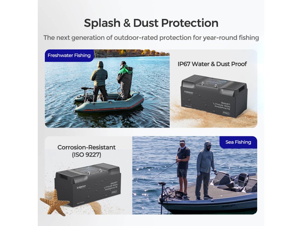 Pro nadšence zimních venkovních aktivit, jako je rybaření na ledě, je nezbytná samoohřívaná LiFePO4 baterie. Tato 12V 200Ah Pro LiFePO4 baterie se automaticky zahřeje při nabíjecím proudu vyšším než 6A, aby zajistila bezpečné nabíjení v podmínkách pod nulou a poskytovala stabilní energii pro prodloužení životnosti sonarů a dalších nezbytností. (Je doporučen nabíječ Renogy 12V 20A AC-DC LFP Battery Charger.)